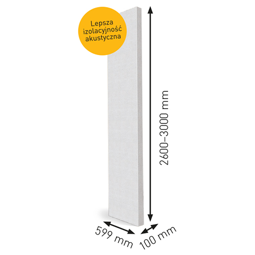 Podwójna przegroda z elementów Ytong Panel G4/600 o grubości 10 cm z wypełnieniem wełną mineralną pozwala na osiągnięcie wymaganych parametrów akustycznych nawet wtedy, gdy stropy nie mają wystarczającej nośności do posadowienia masywnych ścian akustycznych.